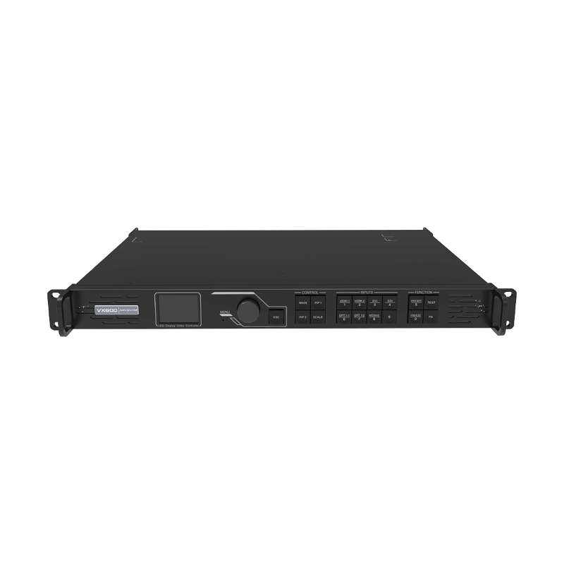 O VX600 é capaz de receber uma variedade de sinais de vídeo e processar imagens de alta resolução. Além disso, o dispositivo possui escala de saída contínua, baixa latência, brilho em nível de pixel, calibração de croma e muito mais para proporcionar uma excelente experiência de exibição de imagens. Ele pode ser amplamente utilizado em aplicações como locação de médio e alto padrão, sistemas de controle de palco e telas de LED de passo fino.
